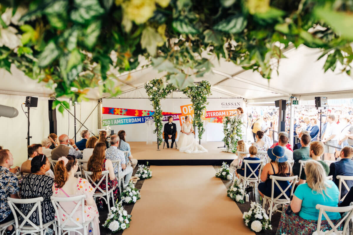Vandaag geven twintig bruidsparen elkaar het jawoord op de Ring, omringd door hun gasten en de stad Amsterdam. Zij zijn de gelukkigen na een loting waaraan vierhonderd stellen deelnamen. De huwelijken worden voltrokken door de buitengewoon ambtenaren van de burgerlijke stand (babsen) van de gemeente Amsterdam. Het trouwen op de Ring wordt mede mogelijk gemaakt door GASSAN.